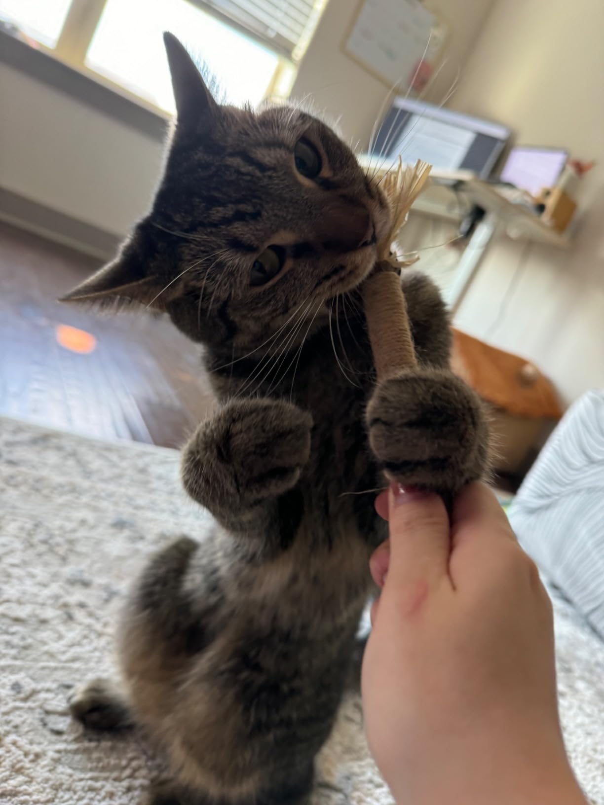 Silvervine sticks provide dental benefits, which most toys don’t offer. They engage your cat’s senses, reduce plaque buildup, and help alleviate stress, making them both a fun and functional treat.